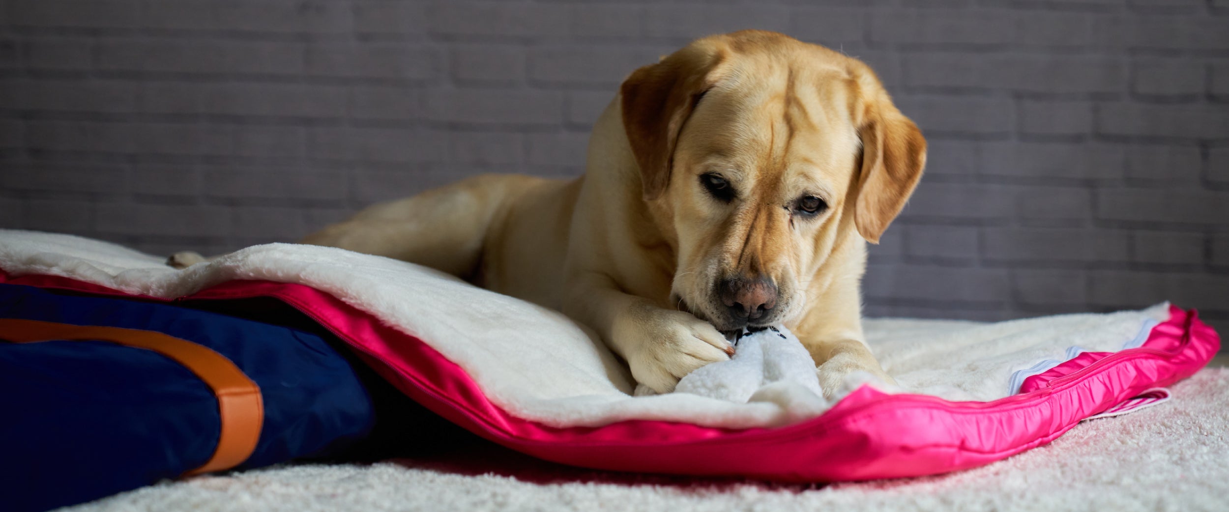 Whether working from home or in the office, Teddy always knows where his spot is with the comfort of his own traveling bed.